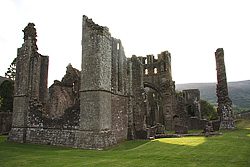 In the attractive and peaceful Vale of Ewyas, which is close to the Black Mountains, are the spectacular ruins of Llanthony Priory, which is all that remains of one of the greatest buildings of medieval Wales. Not far from Llanthony, at Capel-y-Ffin, is the chapel of St Mary The Virgin which was built in 1762 on the site of a medieval place of worship and pilgrimage. In the chapel's graveyard is a headstone carved by Eric Gill, who established a community - including the artist and poet David Jones - in 1924 in what remained of the monastery established in 1870 by 'Father Ignatius'.
