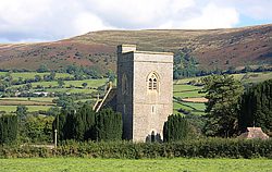 In the attractive and peaceful Vale of Ewyas, which is close to the Black Mountains, are the spectacular ruins of Llanthony Priory, which is all that remains of one of the greatest buildings of medieval Wales. Not far from Llanthony, at Capel-y-Ffin, is the chapel of St Mary The Virgin which was built in 1762 on the site of a medieval place of worship and pilgrimage. In the chapel's graveyard is a headstone carved by Eric Gill, who established a community - including the artist and poet David Jones - in 1924 in what remained of the monastery established in 1870 by 'Father Ignatius'.